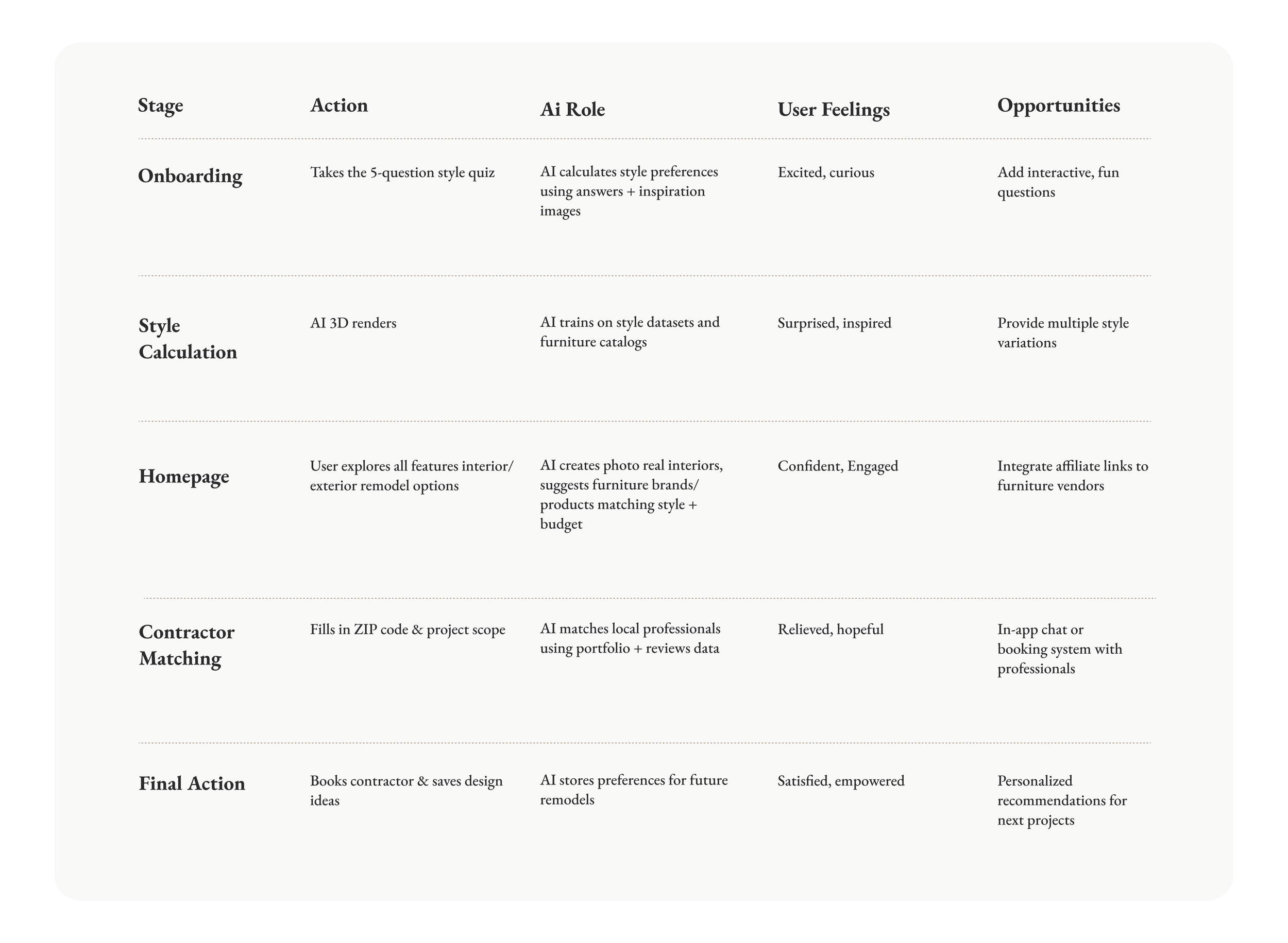 Journey Maps 1: Style Discovery + Furniture Suggestions + Local Pros